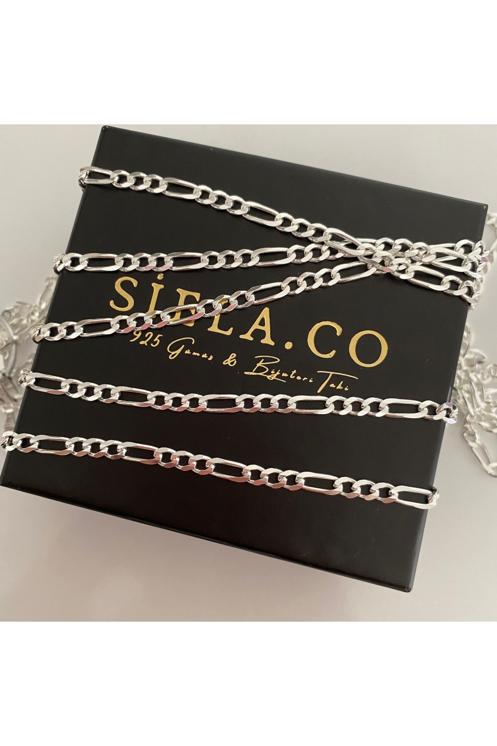 Ürünümüz 925 ayar gümüştür. Zincir uzunluğu 45 cm'dir. Farklı zincir uzunluğu isterseniz bizimle mail üzerinden ya da @siela.adaweb.tr hesabından sipariş numaranız ile ulaşabilirsiniz. Kullanım Tavsiyeleri ; Uzun süreli kullanım için kimyasallar ile temas ettirmeyiniz. Kullanılmayan zamanlarda kutularında saklamaya özen gösteriniz.