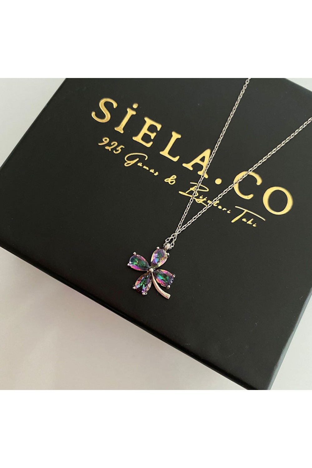 Ürünümüz 925 ayar gümüştür. Zincir uzunluğu 45 cm’dir. Farklı zincir uzunluğu isterseniz bizimle mail üzerinden ya da @siela.adaweb.tr hesabından sipariş numaranız ile ulaşabilirsiniz.