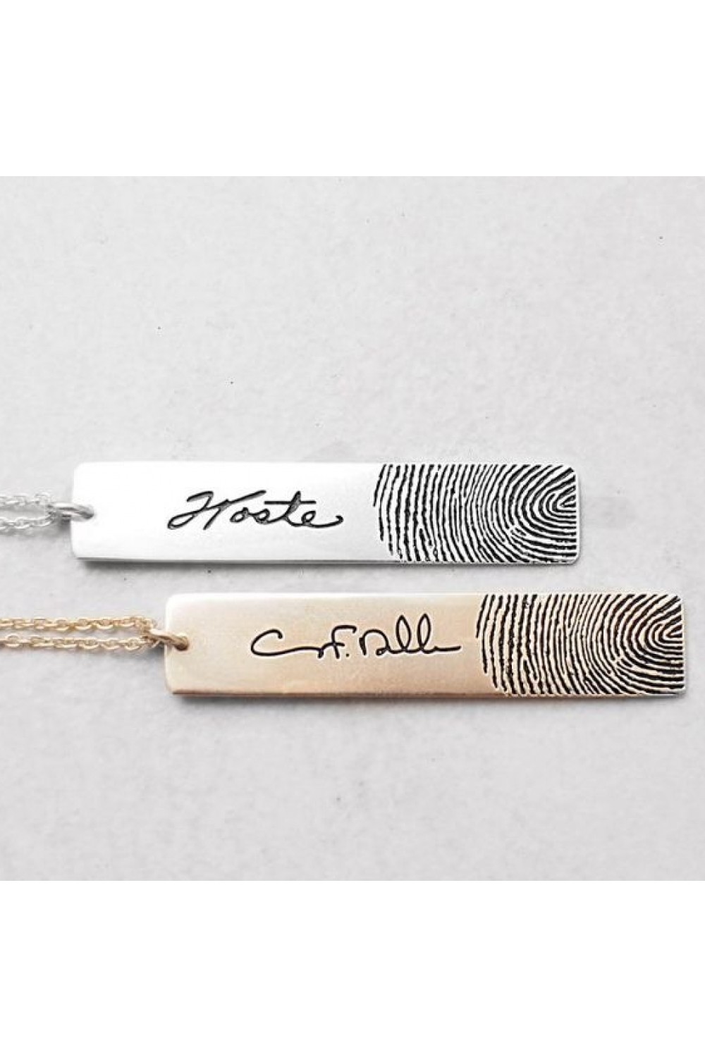 Zincir uzunluğu standart 45cm'dir. 2 adet ürün gönderilecektir. Parmak izi görseli ve yazılmasını istediğiniz metni DM ya da mail üzerinden iletebilirsiniz.