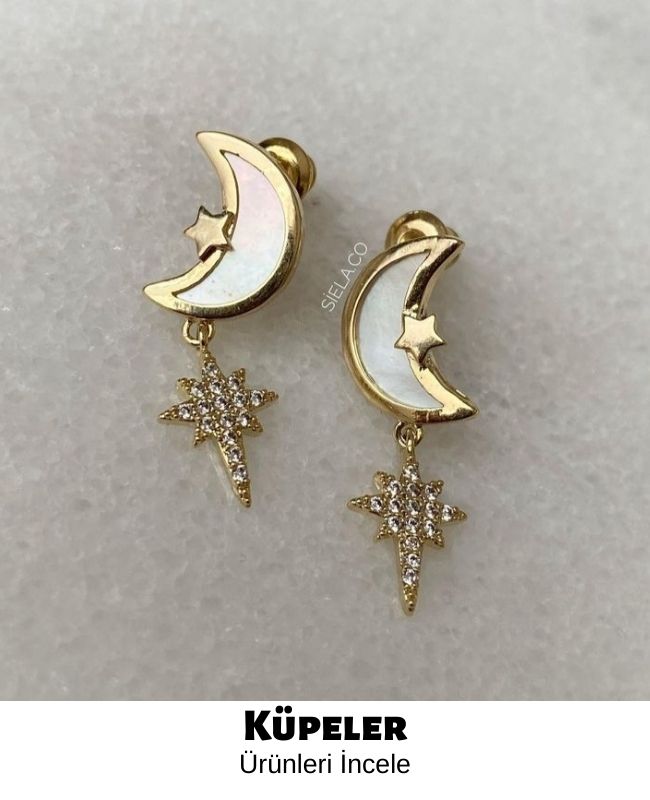 925 Gümüştür. İster sallantılı parçaları ile isterseniz sade olarak tercih edebilirsiniz. Sallantı kısmını ikisini de simge (yonca, yusufçuk, pati, ay..